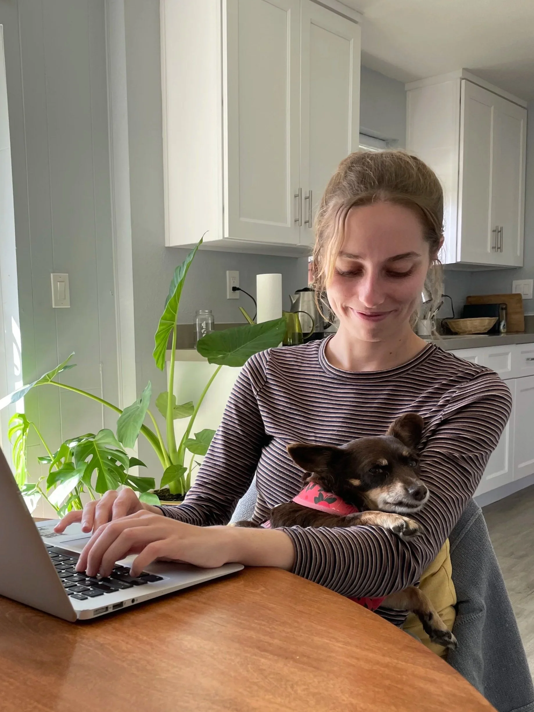 Besides art, Nina has a deep love for travel, learning about animals, and spending time in nature. She loves her goofy rescue mutt Rosie, who inspires much of her art.